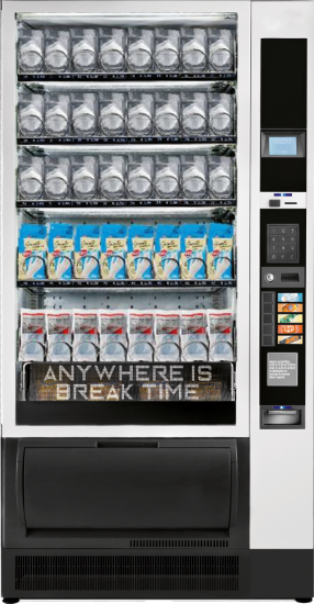 Eleganckie aluminiowe drzwi z jasnymi wstawkami z poliwęglanu. Opatentowane kierunkowe oświetlenie LED prowadzi użytkownika przez proces wyboru, płatności i dostawy. Interfejs użytkownika może obsługiwać maksymalnie trzy systemy płatności.
